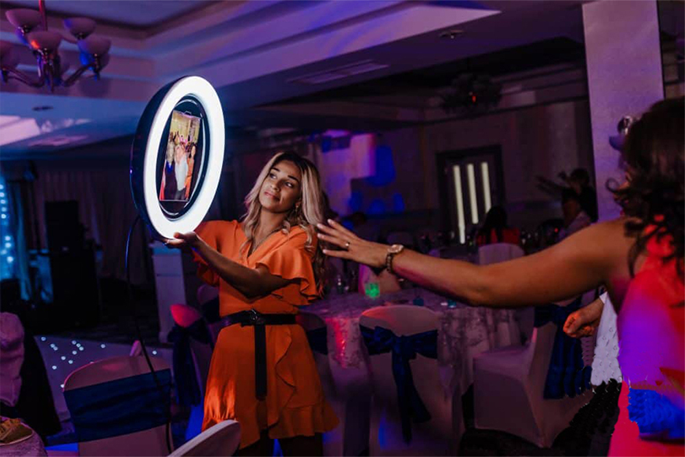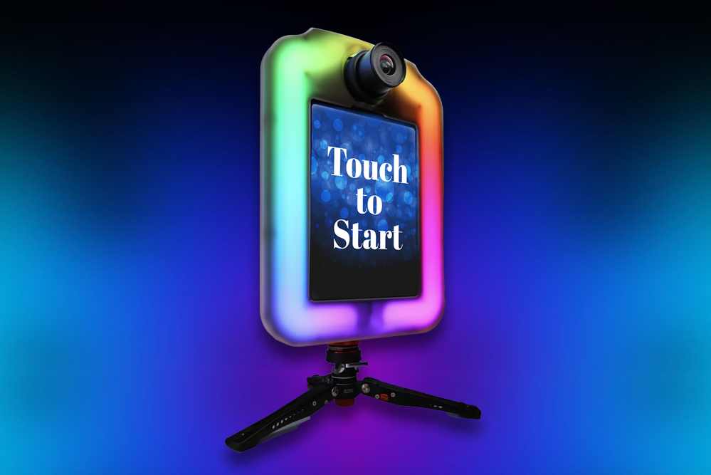 A very Sleek looking photo booth, the Super Social Booth is another new addition to our line of booths. What makes it special is the LED ring that lights up in a full rainbow of colors while also creating that perfect lighting for an amazing photo!