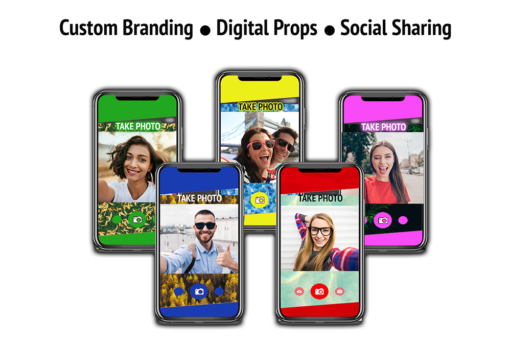 Our Virtual Photo Booth is a fun and simple way to create a unique experience for your guests. Start by working with one of our experts on designing your custom overlay. Then your guests can enjoy a custom interface with your company logo and pick out different virtual props to include in their photos before sending them out on social media or just downloading them right to their smartphone device or laptop!
