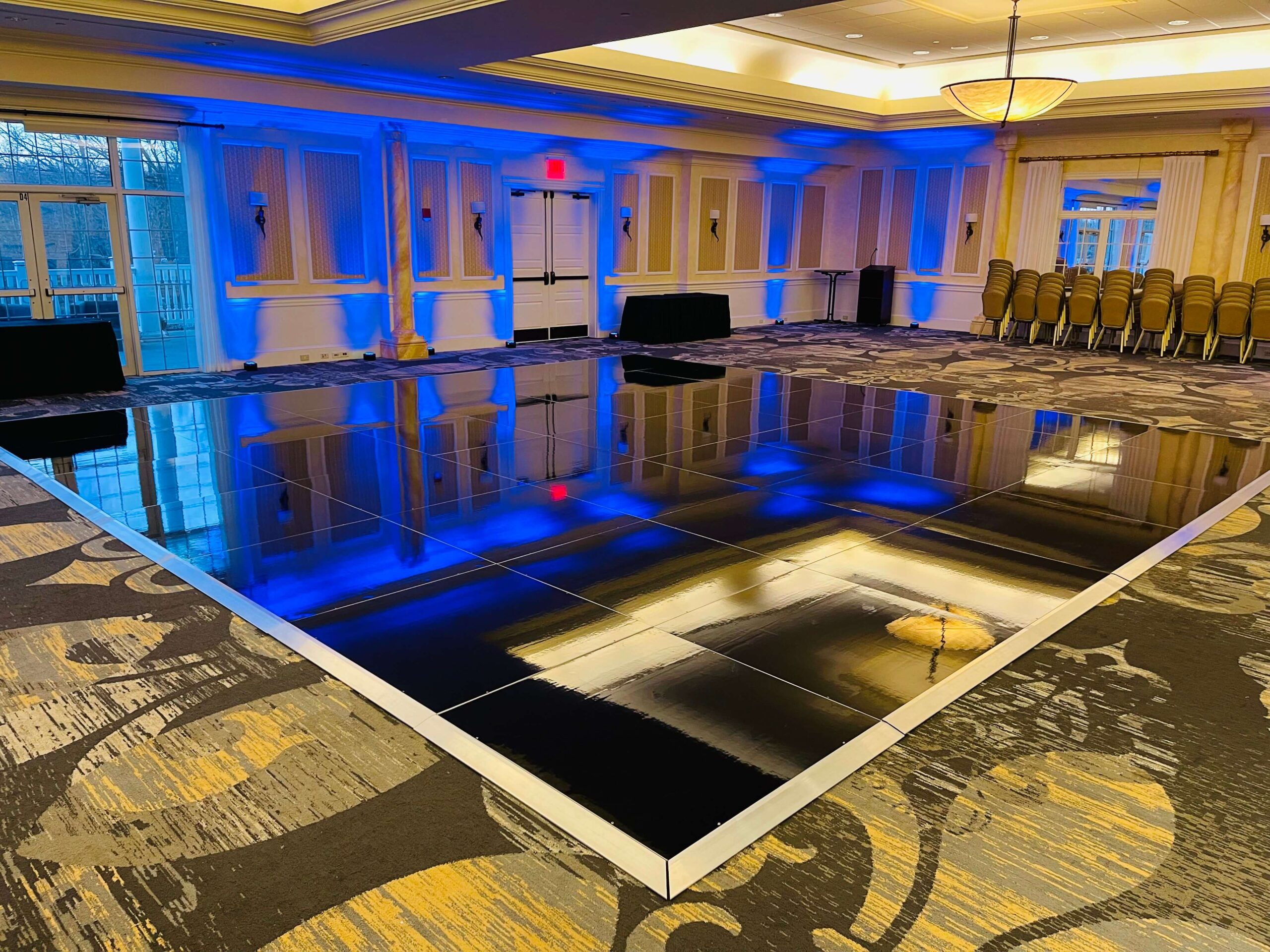 This true black dance floor provides a sleek and smooth surface that invites dancers to move and groove to the beat of the music. The surface is a deep, rich black color, which helps to absorb the light, creating a dark and intimate atmosphere that is perfect for dancin ...