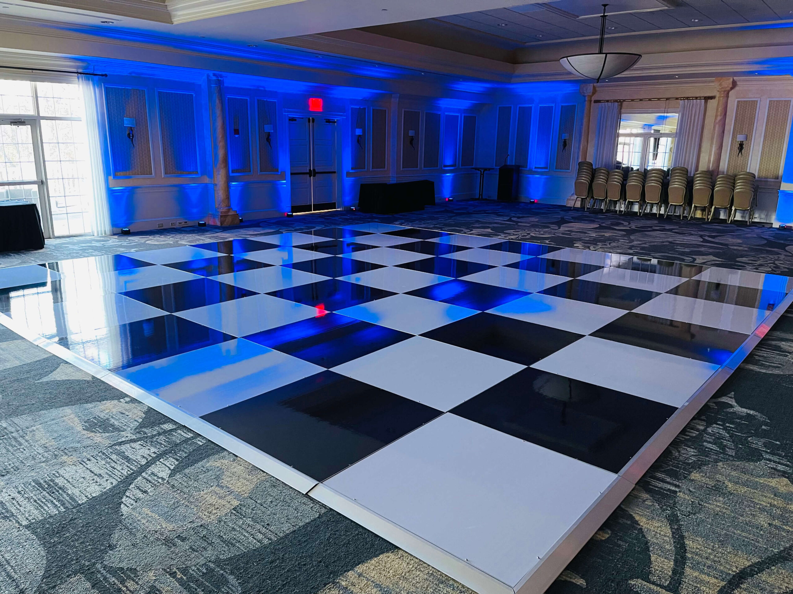 As dancers move across the floor, the checkered pattern seems to come to life, creating a mesmerizing optical illusion that enhances the beauty and energy of the event. The contrast between the black and white squares adds a sense of drama and sophistication to the spac ...