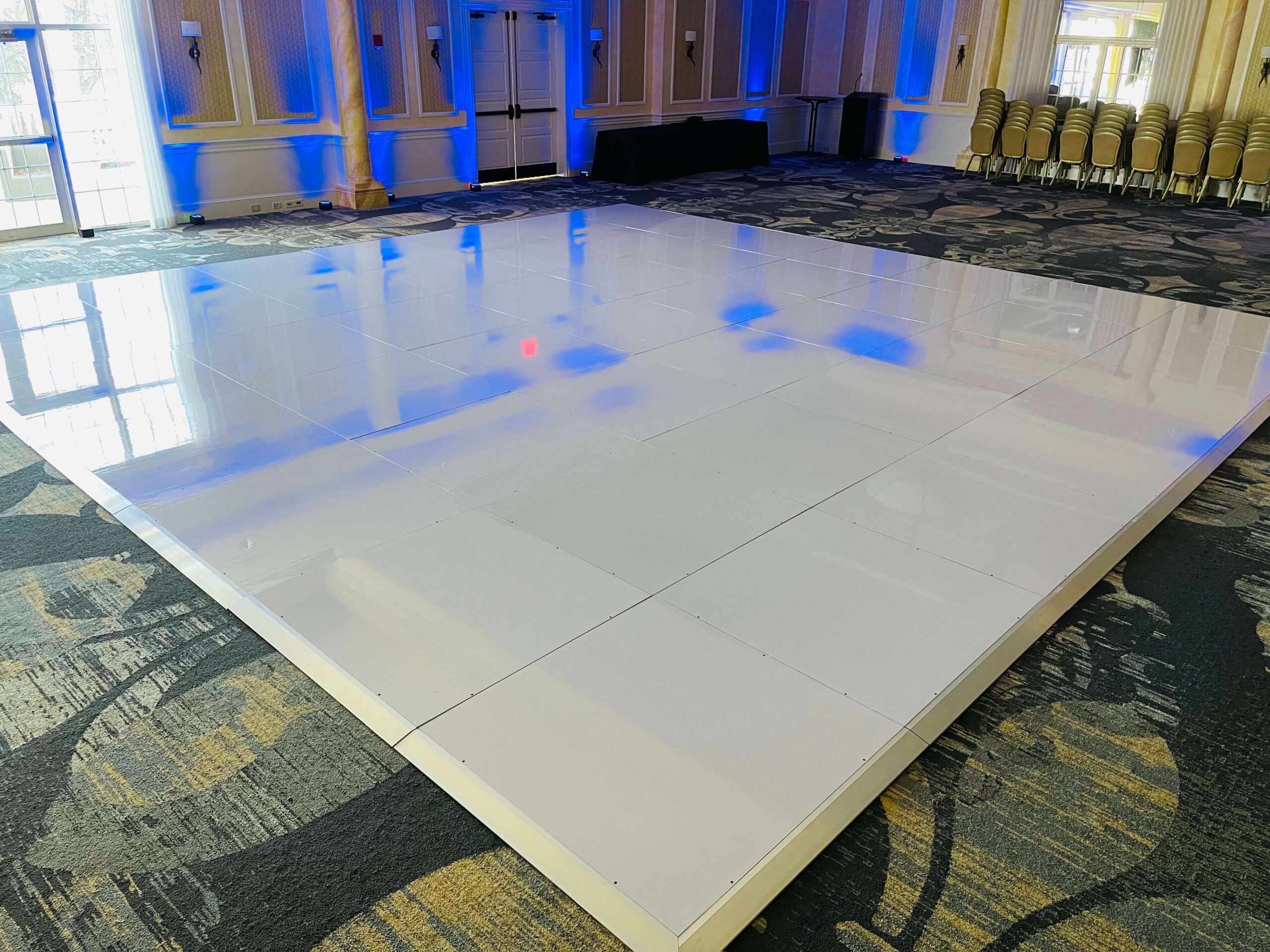 Our beautiful white dance floor is a stunning sight to behold. It is a clean, pristine surface that shines like freshly fallen snow. The surface is smooth and level, without any imperfections or blemishes, creating a seamless and flawless appearance suitable for any typ ...